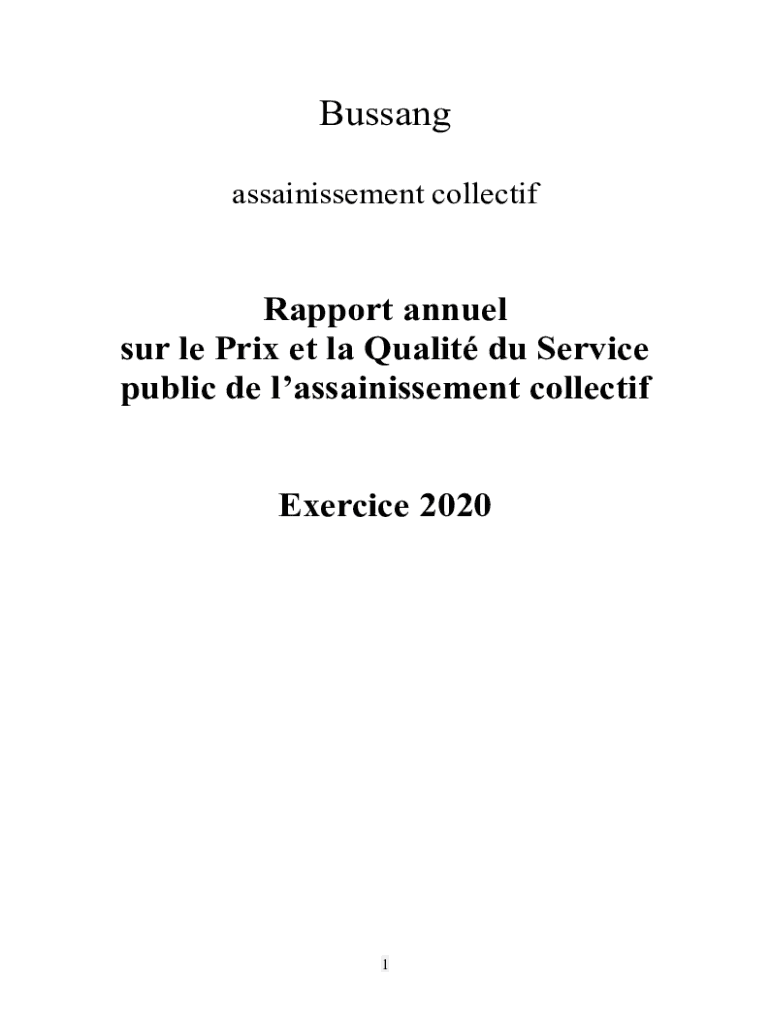 Bussing assainissement collectifRapport annual SUR LE PRI et la Quality du Service public de lassainissement collect if Exercise 20201Rapport annual related AU PRI et la quality Du service public