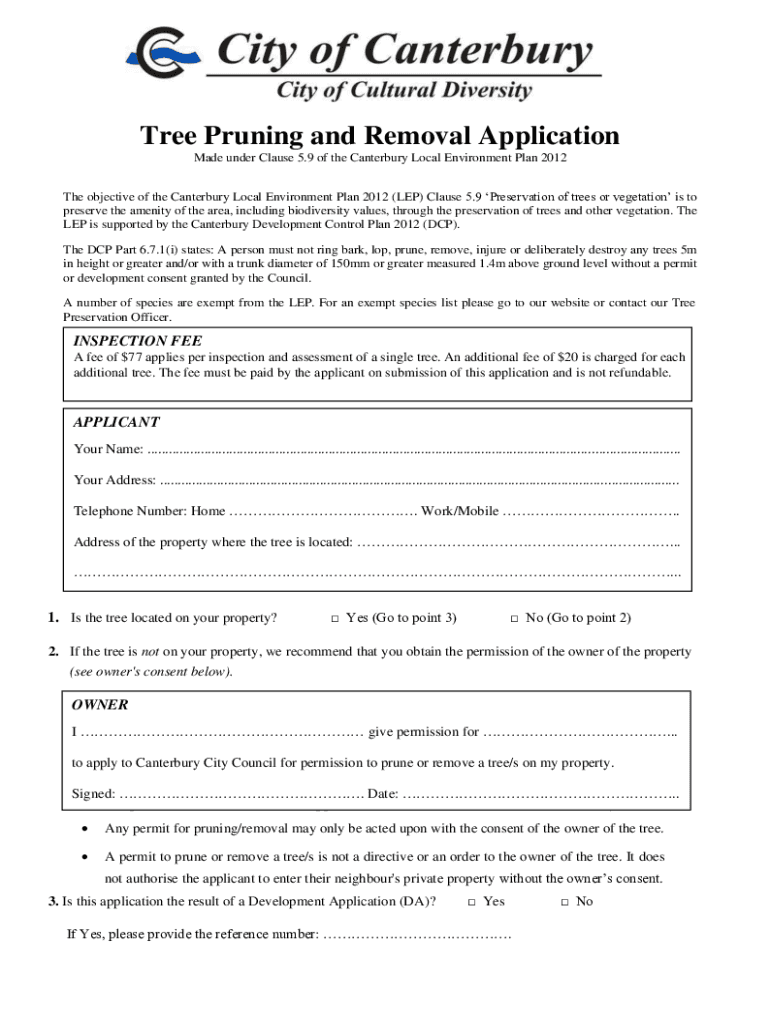 Tree Pruning and Removal Application Made under Clause 5.9 of the Canterbury Local Environment Plan 2012 The objective of the Canterbury Local Environment Plan 2012 (LEP) Clause 5.9 Preservation of