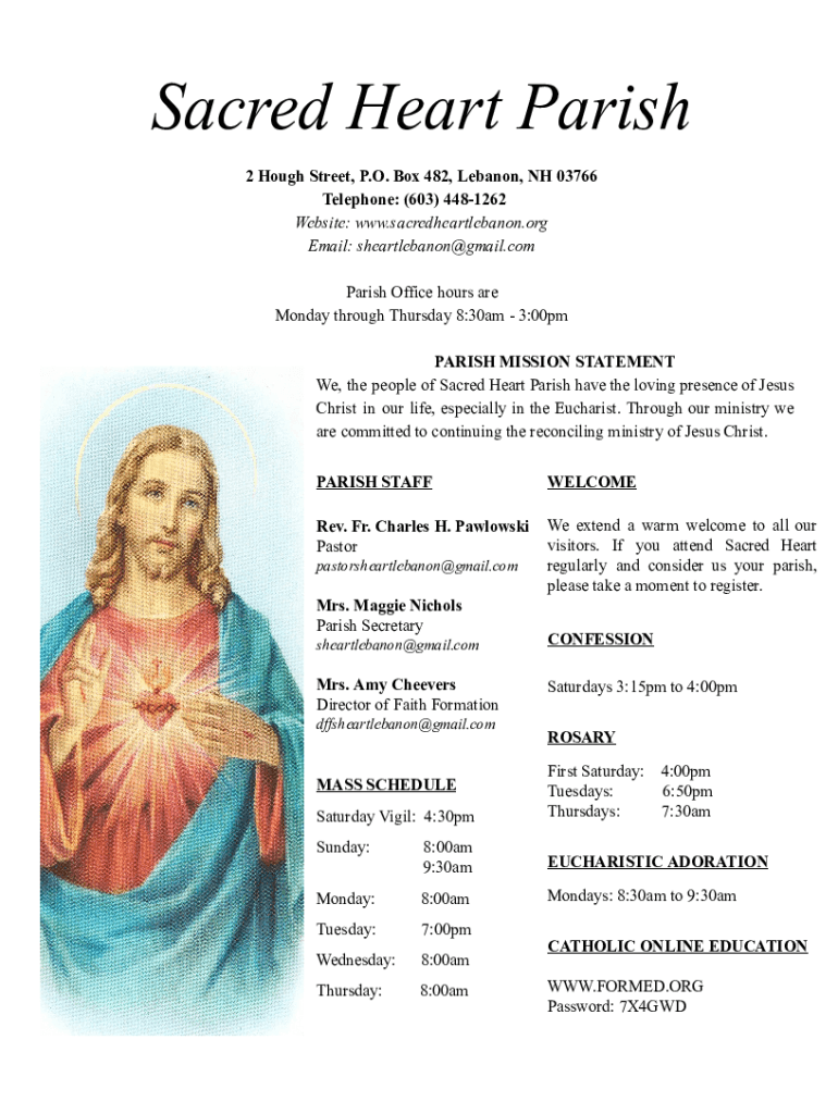 Get the free Register as a Parishioner & Contact Info. - Sacred Heart Parish