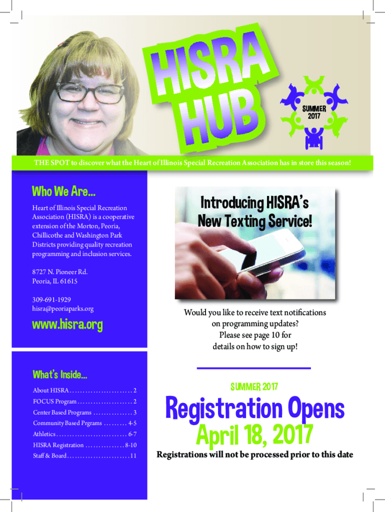 An R HIS B UH SUMMER 2017THE SPOT to discover what the Heart of Illinois Special Recreation Association has in store this season! Who We Are... Heart of Illinois Special Recreation Association (HI