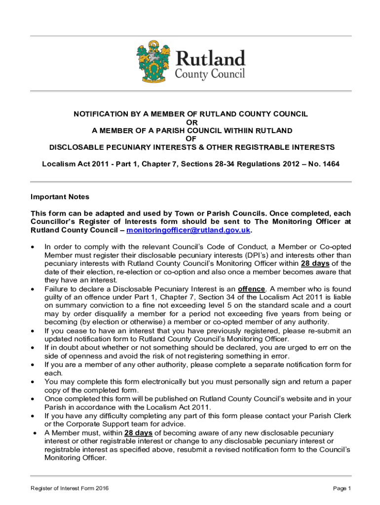 NOTIFICATION BY A MEMBER OF JUTLAND COUNTY COUNCIL OR A MEMBER OF A PARISH COUNCIL WITHIN JUTLAND OF DISCLOSABLE PECUNIARY INTERESTS & OTHER REGISTRABLE INTERESTS Loyalism Act 2011 Part 1, Chapter