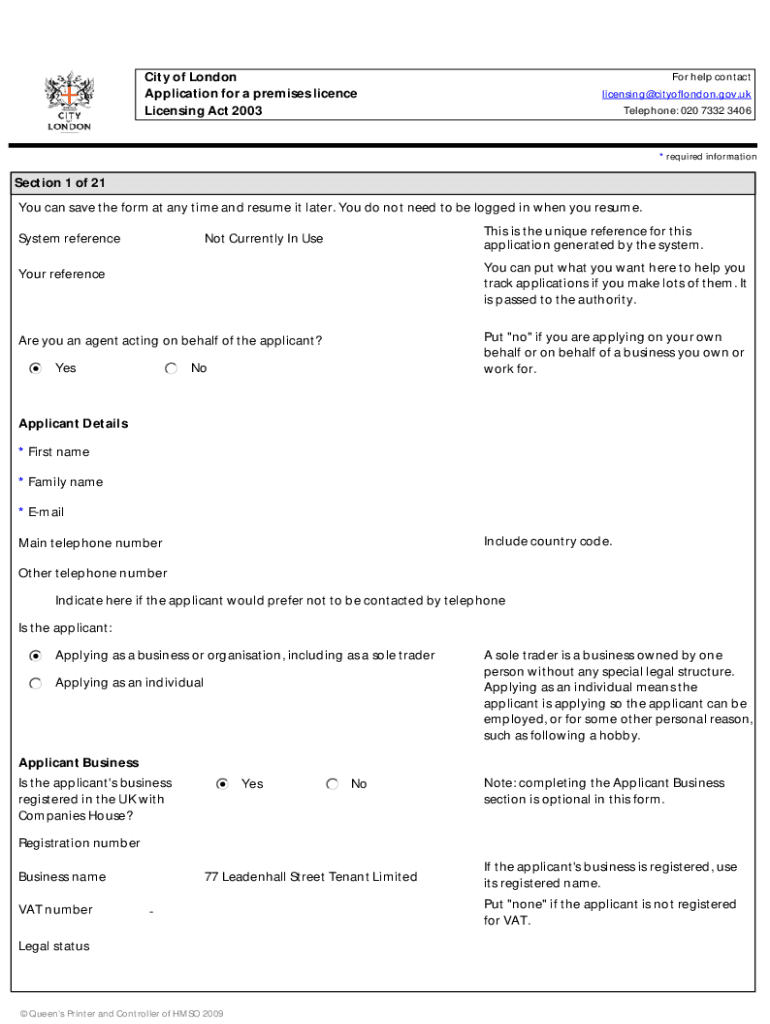 Licensing Act 2003For help contact