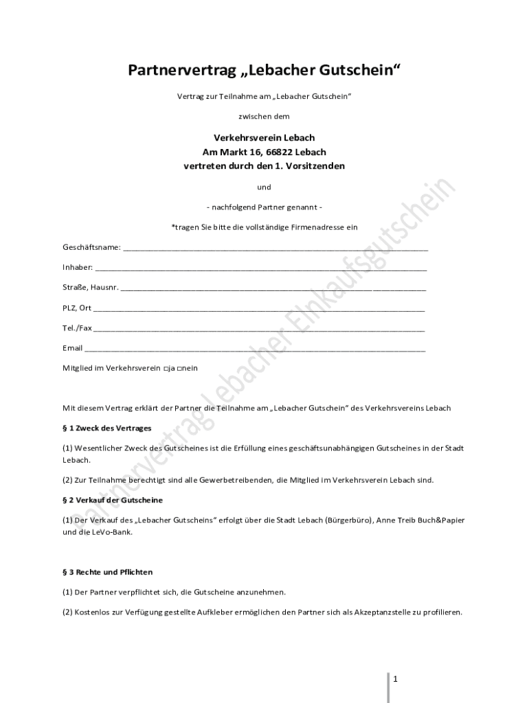 Holen Sie sich kostenlos Vertrag zur Teilnahme am Lebacher Gutschein
