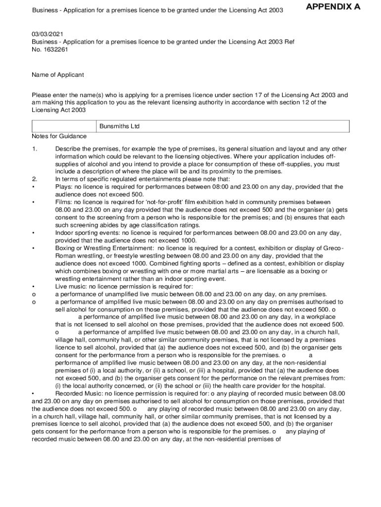 Business Application for a premises license to be granted under the Licensing Act 2003APPENDIX A03/03/2021 Business Application for a premises license to be granted under the Licensing Act 2003 Ref