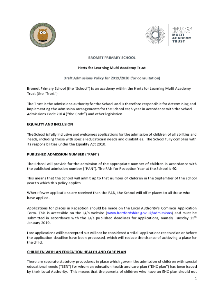 DraftAdmissionsPolicyfor2019/2020(for consultation)