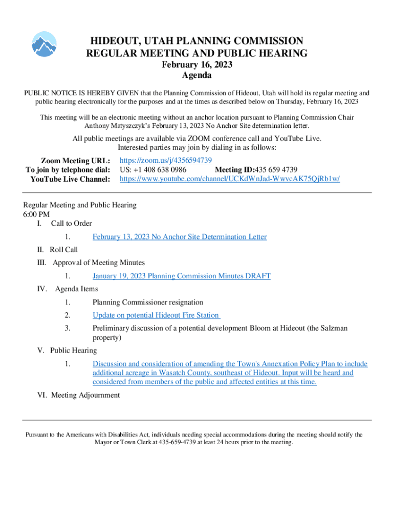 Get the free Notice of Public Hearing Hideout Planning Commission