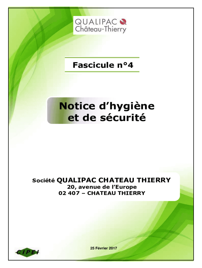 Fascicle n4Notice hygiene et de scuritSocitQUALIPAC Château THIERRY 20, avenue de Europe 02 407 Château THIERRY25 Frier 2017 hs_qualipac(château)(v9.017client)DOSSIER DE DEMAND AUTHORIZATION EXPLOITER