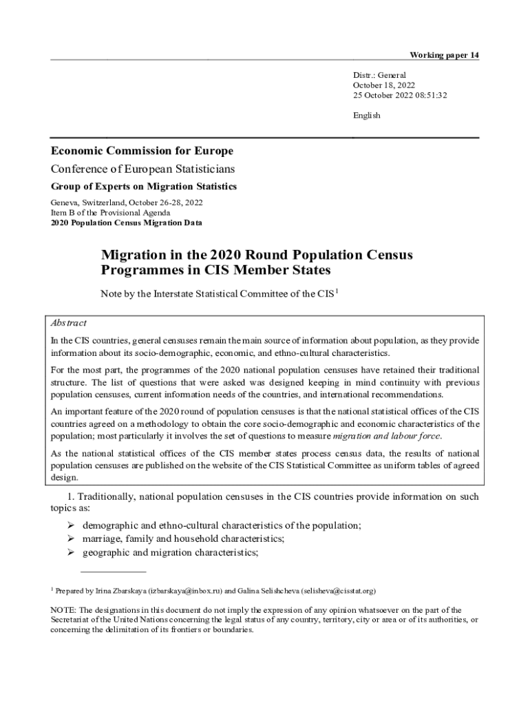 Working paper 14 Dist.: General October 18, 2022 25 October 2022 08:51:32 EnglishEconomic Commission for Europe Conference of European Statisticians Group of Experts on Migration Statistics Geneva,