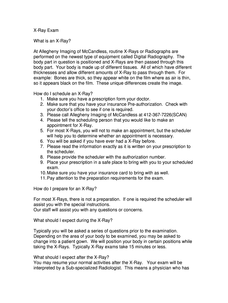 At Allegheny Imaging of McCandless, routine Rays or Radiographs are