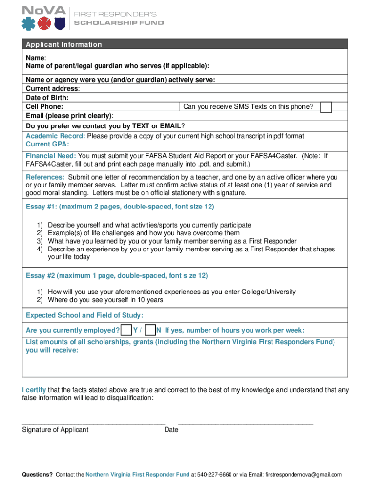 Get the free Northern Virginia First Responders Scholarship Fund
