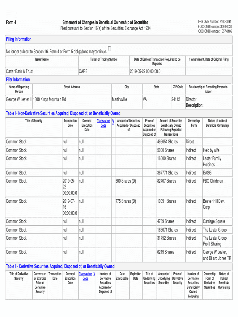 OCC OMB Number: 15570106Statement of Changes in Beneficial Ownership of Securities