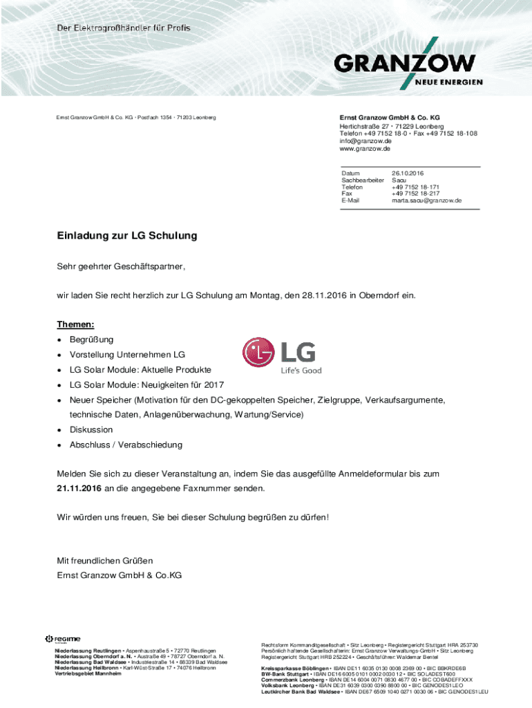 Holen Sie sich kostenlos Dehn / LG-Solar und MyPV Schulung