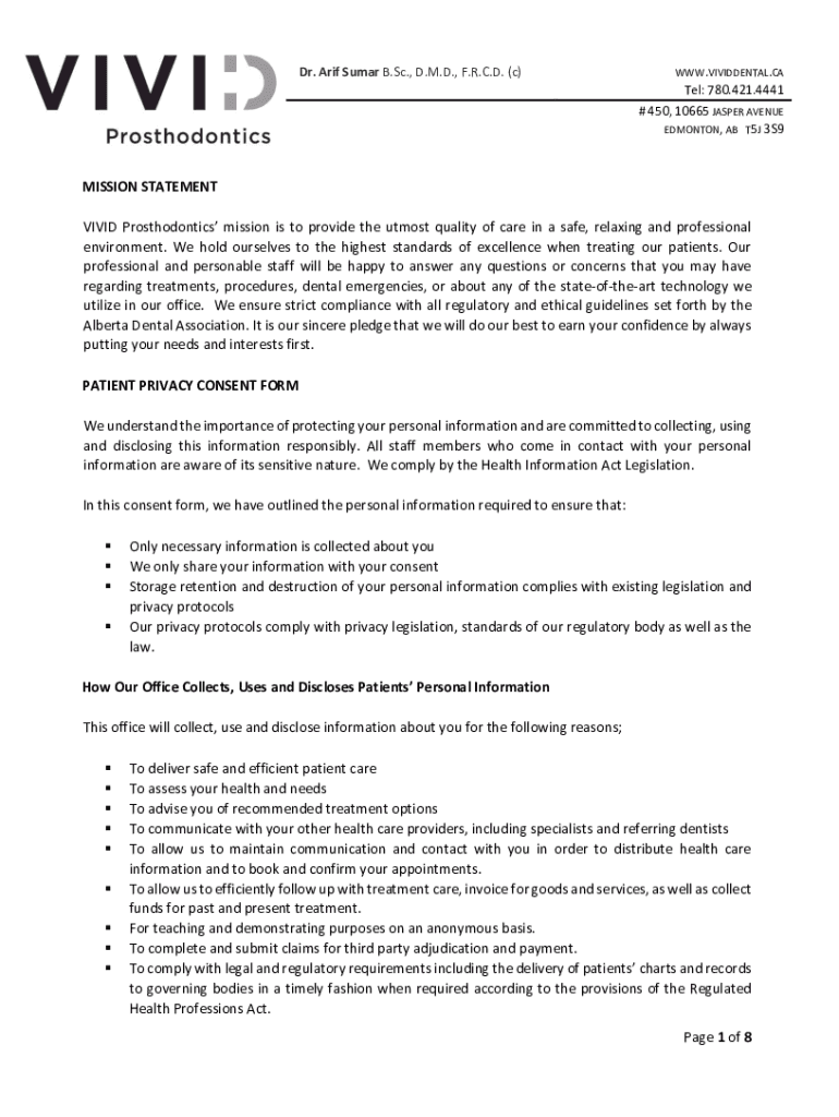 Dr. Arif Sugar B.Sc., D.M.D., F.R.C.D. (c)WWW.VIVIDDENTAL. Cater: 780.421.4441 # 450, 10665 JASPER AVENUE EDMONTON, AB T5J 3S9MISSION STATEMENT VIVID Prosthodontist mission is to provide the utmost