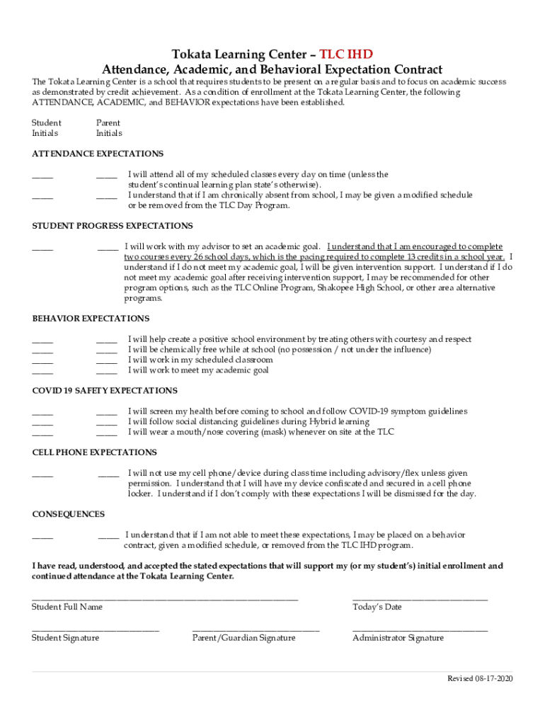 Attendance, Academic, and Behavioral Expectation Contractile Toyota Learning Center is a school that requires students to be present on a regular basis and to focus on