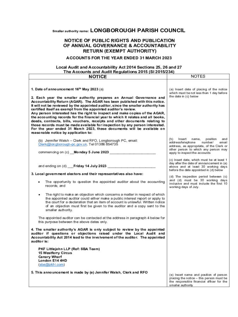 Smaller authority name:FOXBOROUGH PARISH COUNCILNOTICE OF PUBLIC RIGHTS AND PUBLICATION OF ANNUAL GOVERNANCE & ACCOUNTABILITY RETURN (EXEMPT AUTHORITY) ACCOUNTS FOR THE YEAR ENDED 31 MARCH 2023 Local