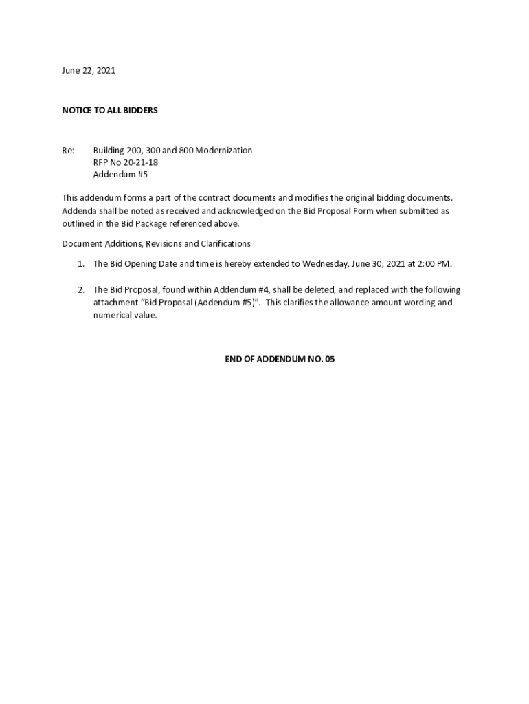 Get the free Addendum #5Bldg 200, 300,& 800