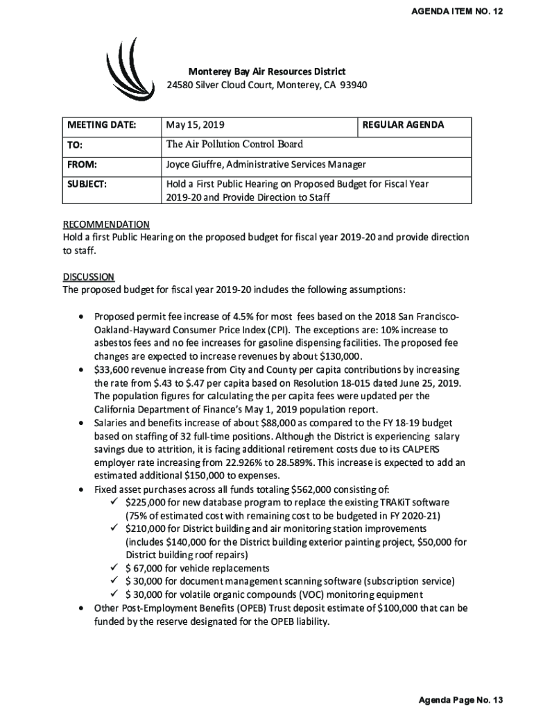 AGENDA ITEM NO. 12Monterey Bay Air Resources District