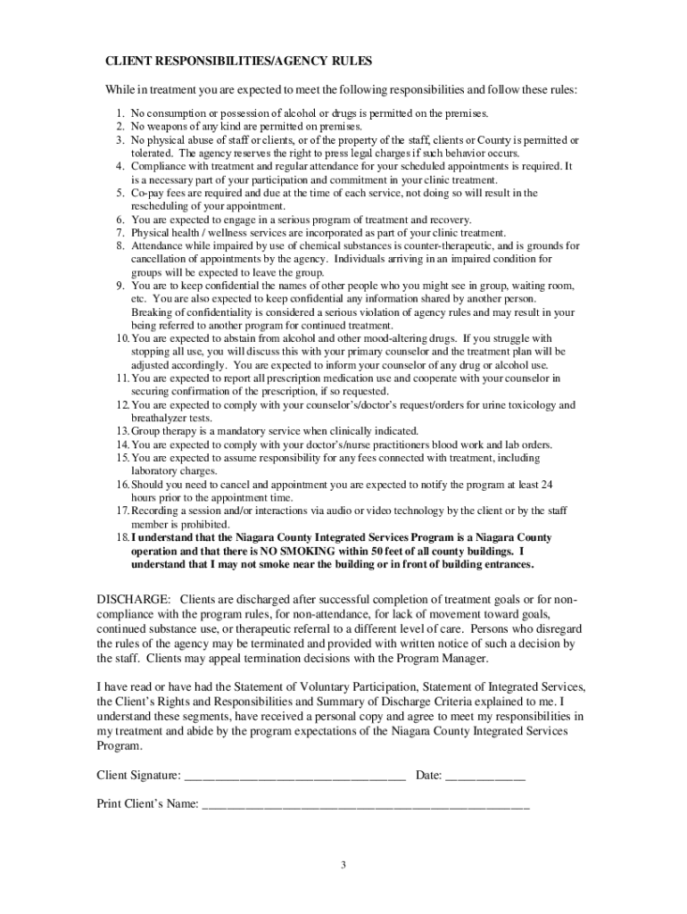 NIAGARA COUNTY DEPARTMENT OF MENTAL HEALTH & SUBSTANCE ABUSE SERVICES Niagara County Counseling and Wellness ServicesREMINDERS COMPLIANCE WITH TREATMENT AND REGULAR ATTENDANCE FOR SCHEDULED APPOINTMENTS