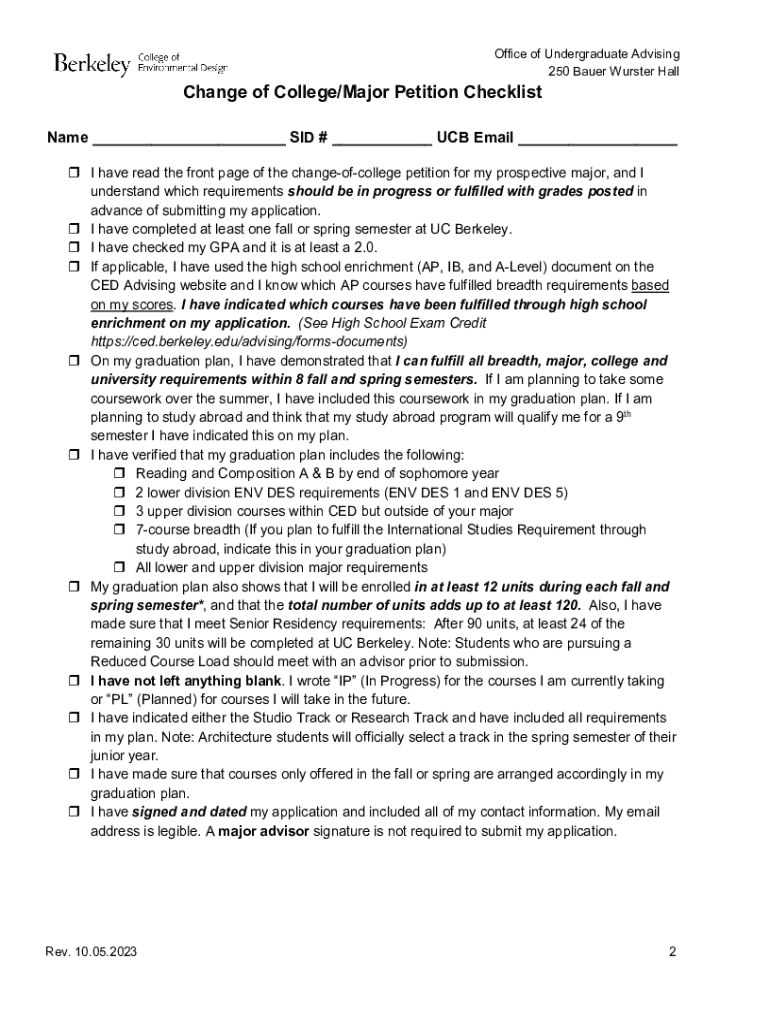 Get the free FormsUndergraduate Advising Support Office - ced berkeley