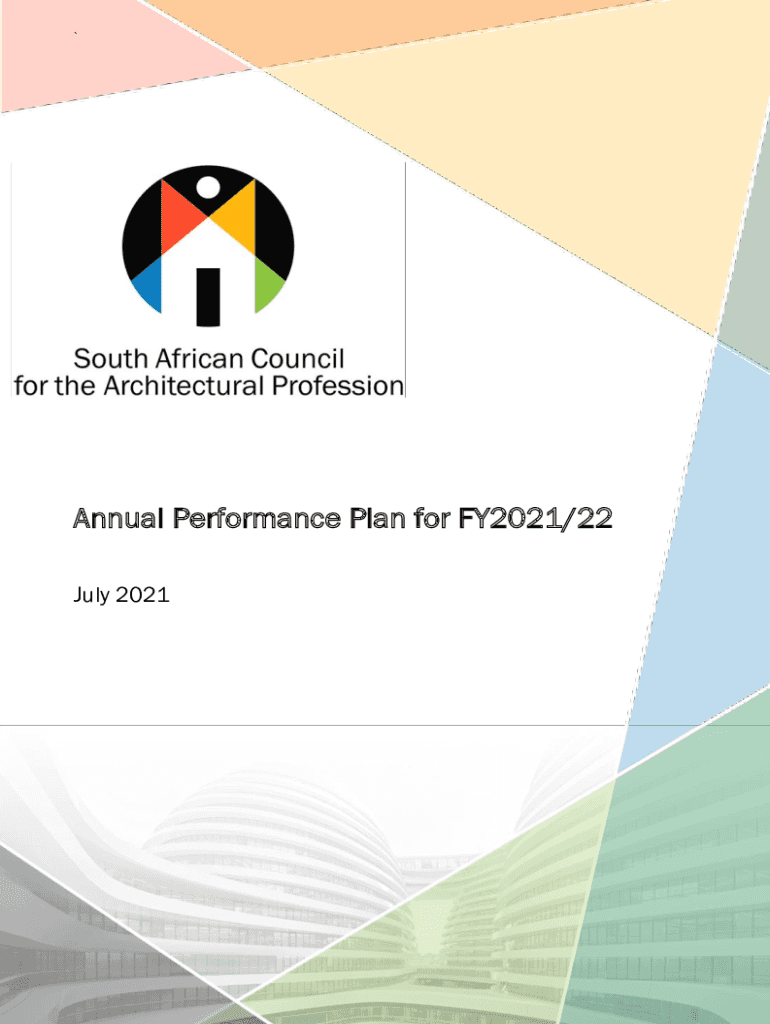 `Annual Performance Plan for FY2021/22 July 2021SOUTH AFRICAN COUNCIL OF THE ARCHITECTURAL PROFESSION Annual Performance Plan for FY2021/22 31 July 2019Table of contents Table of contents..........................................................................................................................................................................................