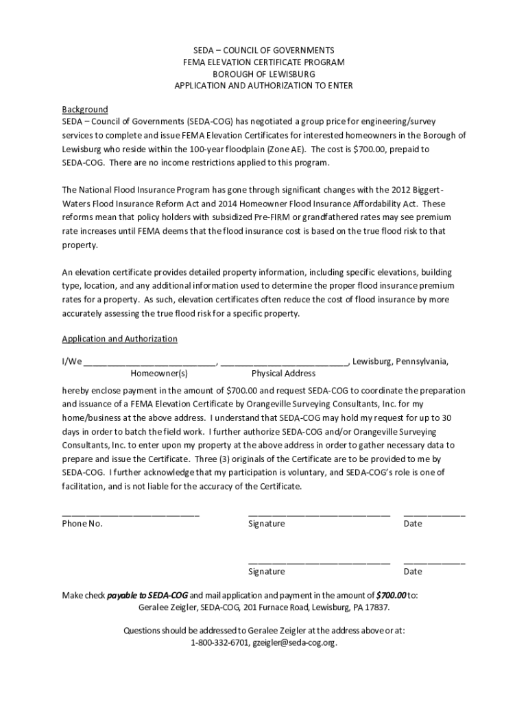 Get the free Elevation certificate available for homeowners on floodplain