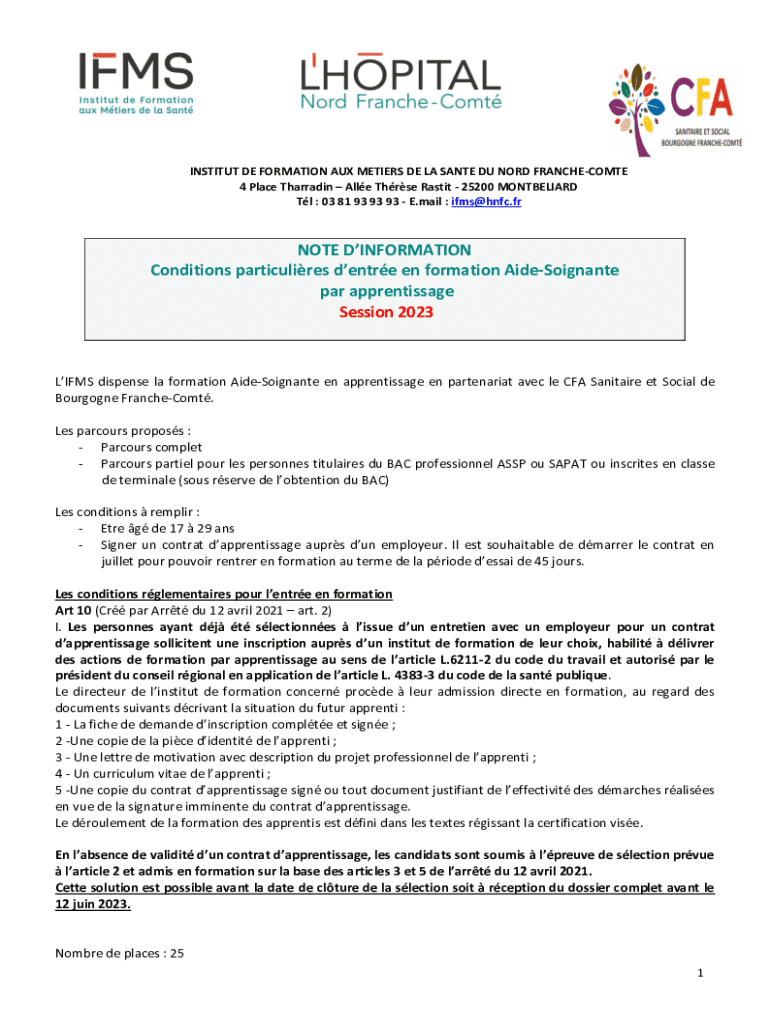 Tl : 03 81 93 93 93 E.mail : ifms@hnfc.frNOTE INFORMATION
