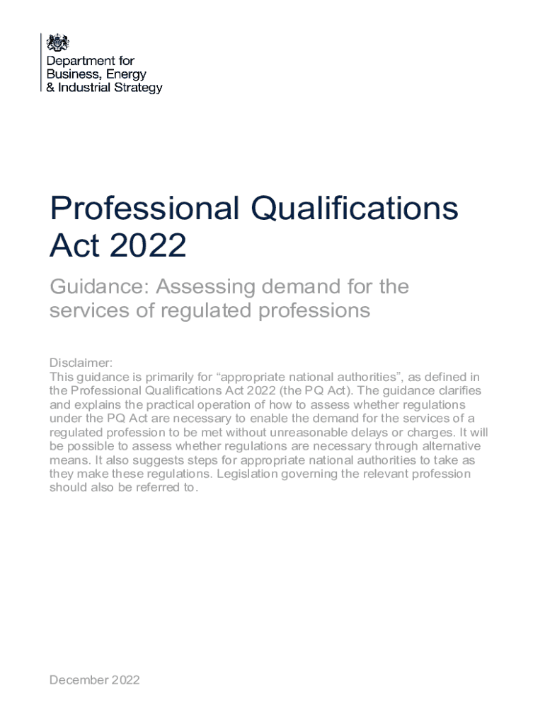 Professional Qualifications Act 2022 Guidance: Assessing demand for the services of regulated professions Disclaimer: This guidance is primarily for appropriate national authorities, as defined in