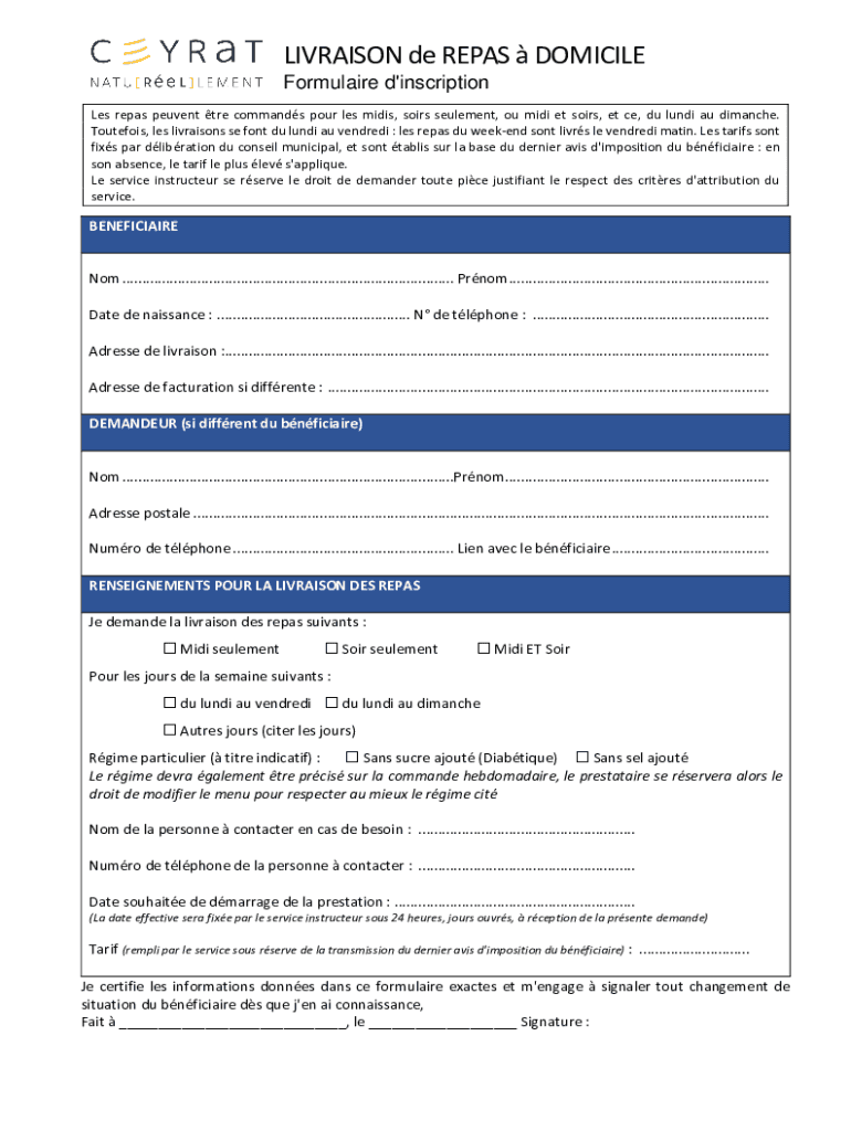 Les établissements de restauration, les traiteurs et toute organisation proposant des repas au public doivent déposer un service de repas sécuritaires.