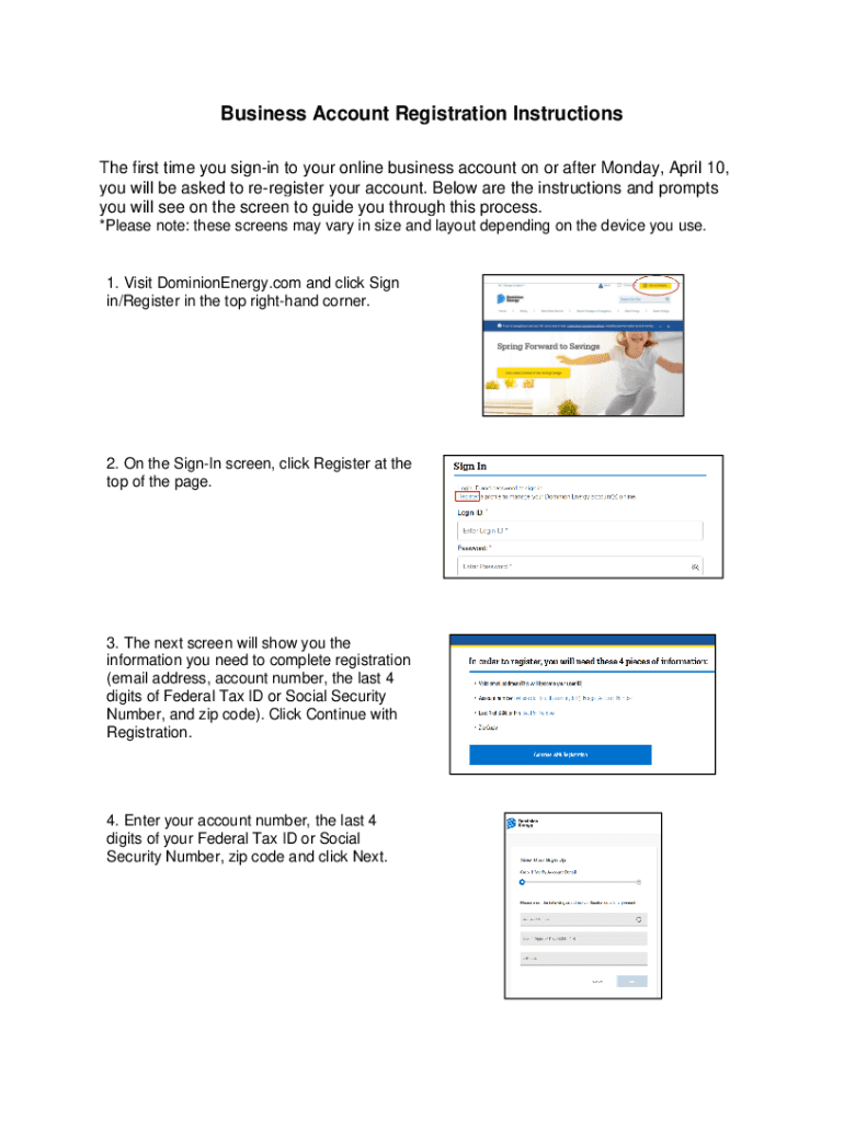 Business Account Registration Instructions The first time you signing to your online business account on or after Monday, April 10, you will be asked to preregister your account. Below are the instructions