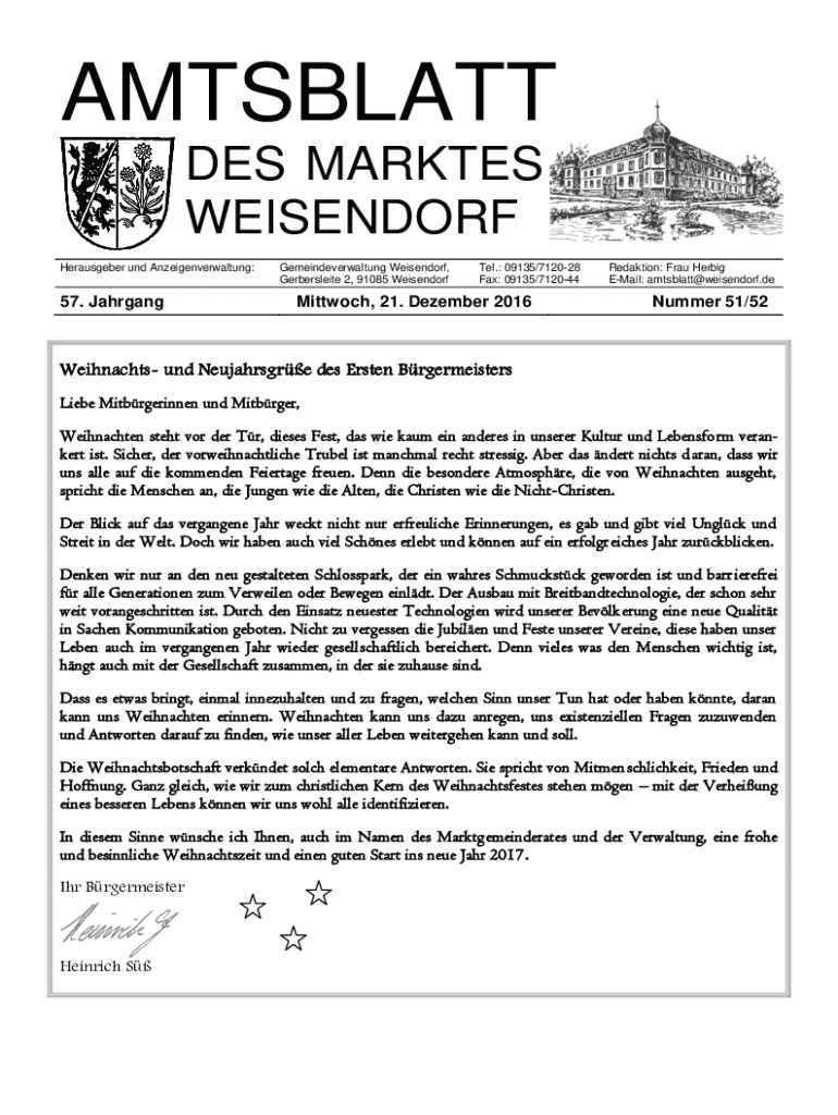 Herausgeber UND Anzeigenverwaltung:57. JahrgangGemeindeverwaltung Waldorf,