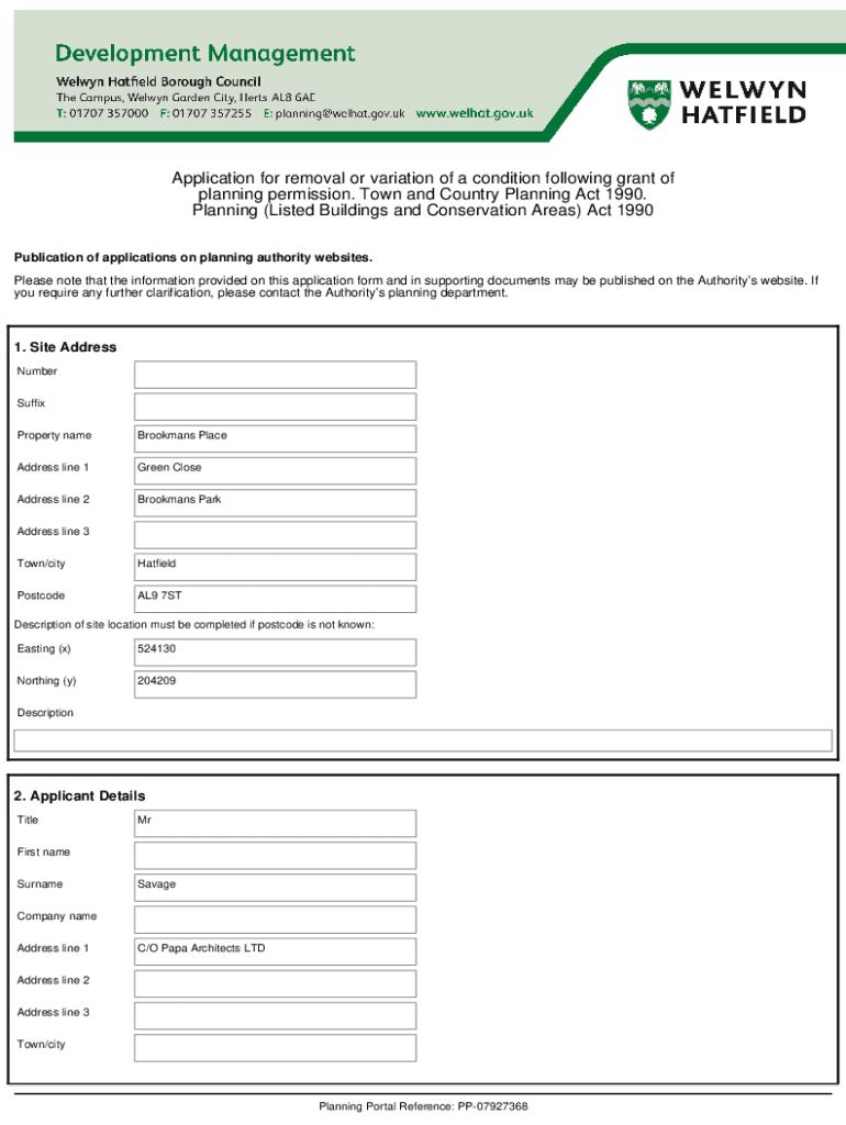 Application for removal or variation of a condition following grant of planning permission. Town and Country Planning Act 1990. Planning (Listed Buildings and Conservation Areas) Act 1990 Publication
