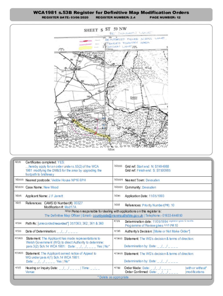 WCA1981 s.53B Register for Definitive Map Modification Orders REGISTER DATE: 03/08/2020REGISTER NUMBER: 2.4PAGE NUMBER: 123(2)(a)3(2)(b)Certificates completed: YES: hereby apply for an order under