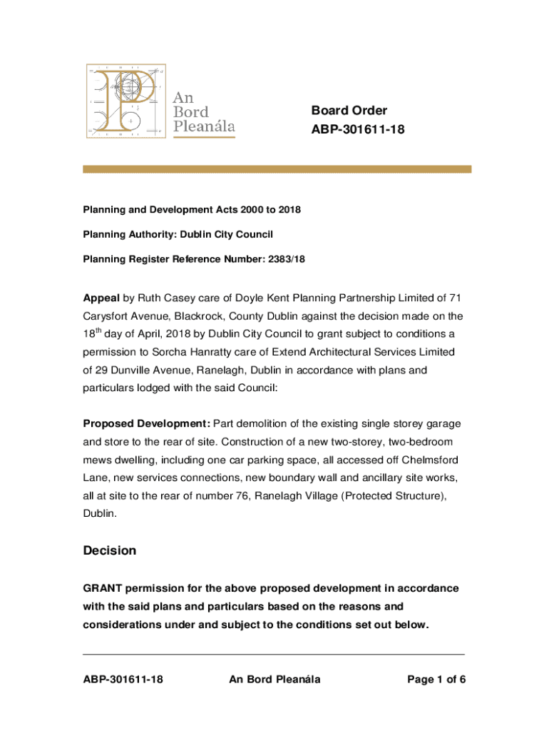 Planning Register Reference Number: 2383/18Appeal by Ruth Casey care of Doyle Kent Planning