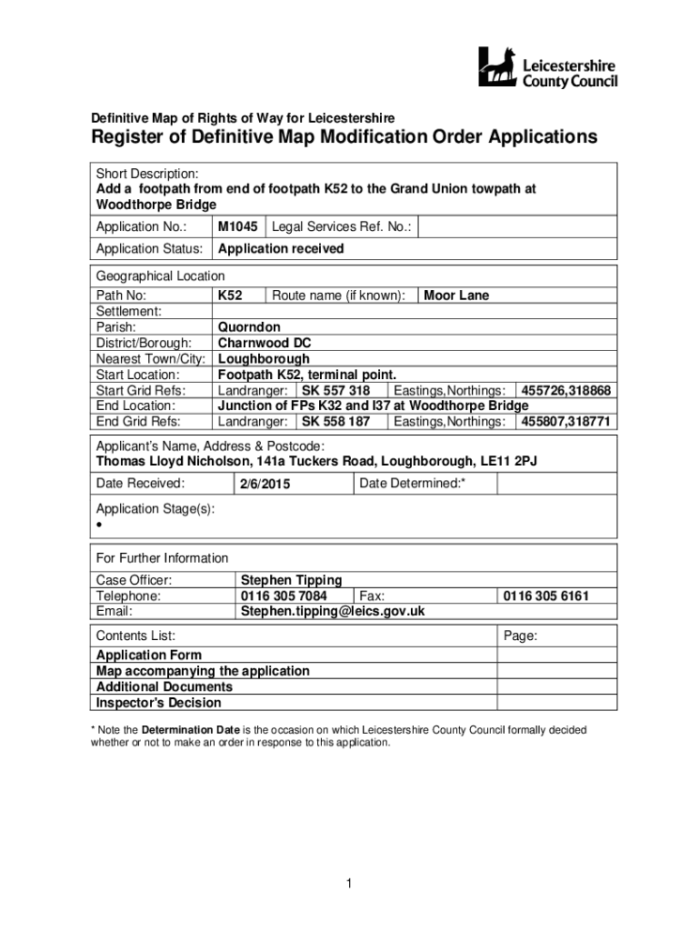 Definitive Map of Rights of Way for LeicestershireRegister of Definitive Map Modification Order Applications