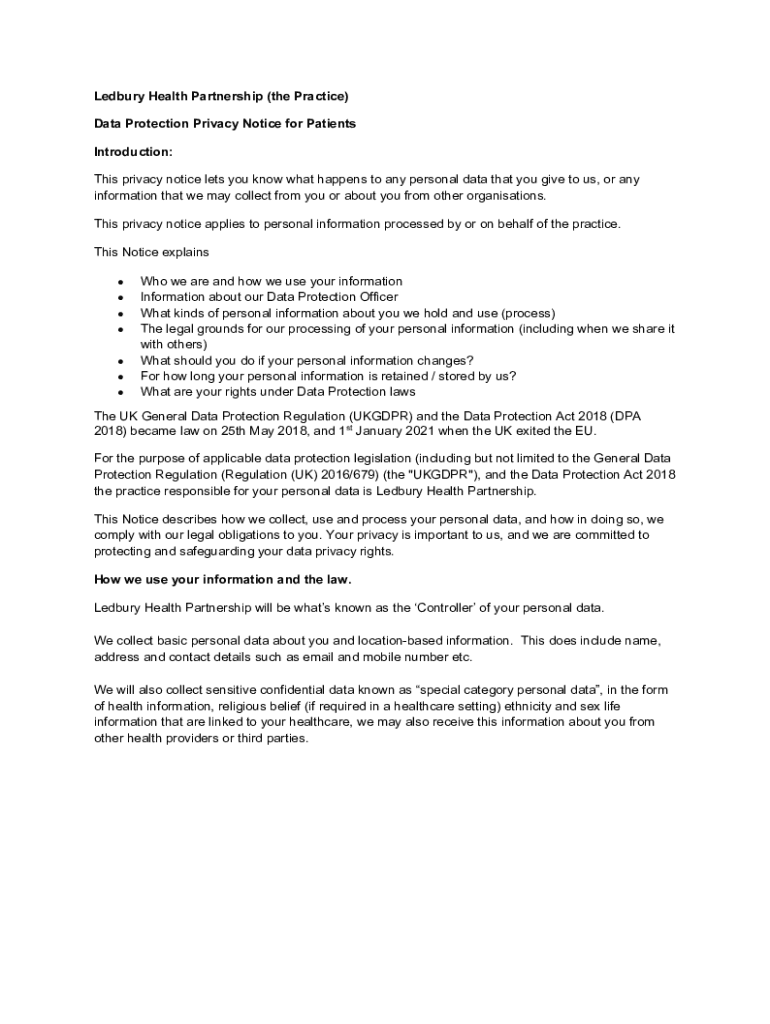 Get the free Ledbury Health Partnership (the Practice) Data Protection ...