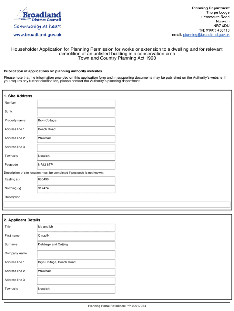 Householder Application for Planning Permission for works or extension to a dwelling and for relevant demolition of an unlisted building in a conservation area Town and Country Planning Act 1990 Publication