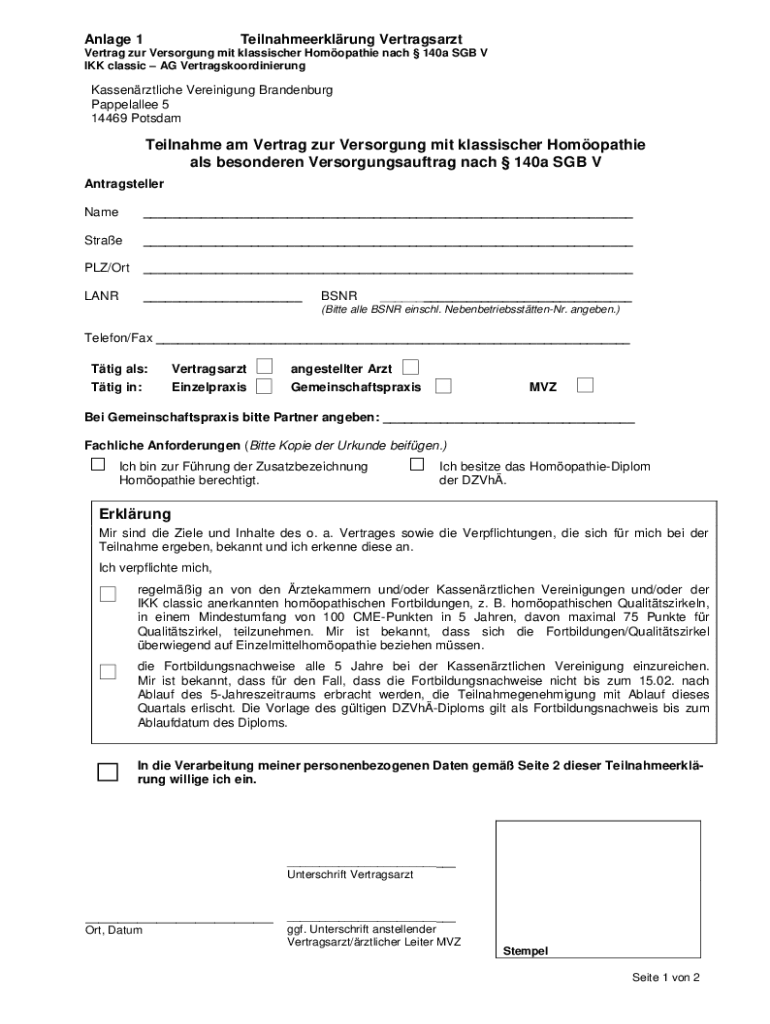 Engage 1Teilnahmeerklrung VertragsarztVertrag our Overstrung MIT klassischer Homeopathic each 140a SGB V