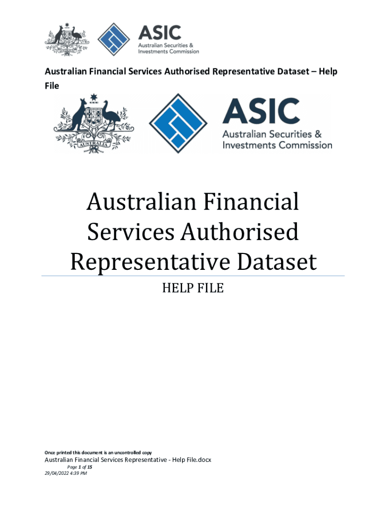 Australian Financial Services Authorized Representative Dataset Help File Australian Financial Services Authorized Representative Dataset HELP Silence printed this document is an uncontrolled copy