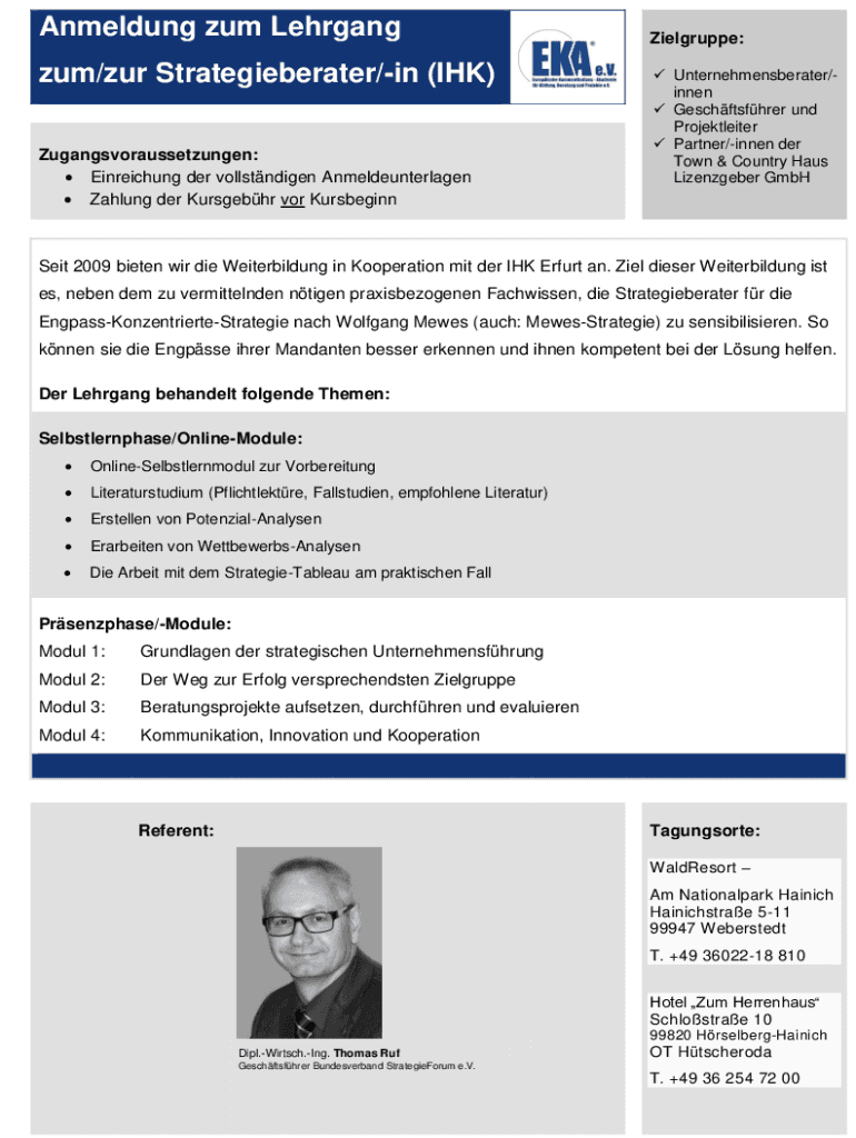 Amending sum Learning sum/our Strategieberater/in (INK) Zugangsvoraussetzungen: Enriching her vollstndigen Anmeldeunterlagen Along her Kursgebhr VOR KursbeginnZielgruppe: Unternehmensberater/inner