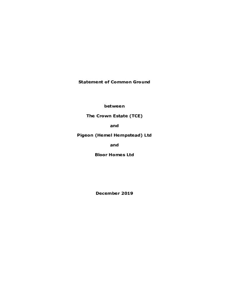 Statement of Common Ground between The Crown Estate (THE) and Pigeon (Heel Hempstead) Ltd and Bloor Homes Ltd December 2019Contents1.0Introduction12.0Land Control13.0Joint Working24.0Delivery2Plan