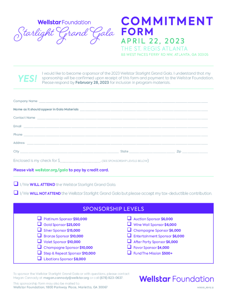 SPONSORSHIPStarlight Grand Gala P O RT UNI T I E APRIL 22, 2023, ST. AEGIS ATLANTA88 WEST PACES FERRY RD NW, ATLANTA, GA 30305EVENT FEATURES: Networking Reception Live Entertainment||Wine WallTouching