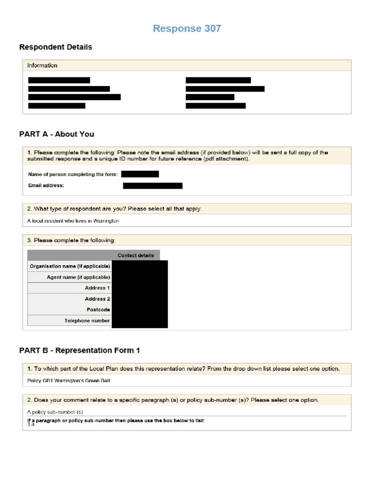 Response 307 Respondent Details Informational A About You 1. Please complete the following: Please note the email address (if provided below) will be sent a full copy of the submitted response and