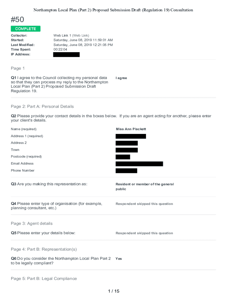 Northampton Local Plan (Part 2) Proposed Submission Draft (Regulation 19) Consultation#50 COMPLETE Collector: Started: Last Modified: Time Spent: IP Address:Web Link 1 (Web Link) Saturday, June 08,