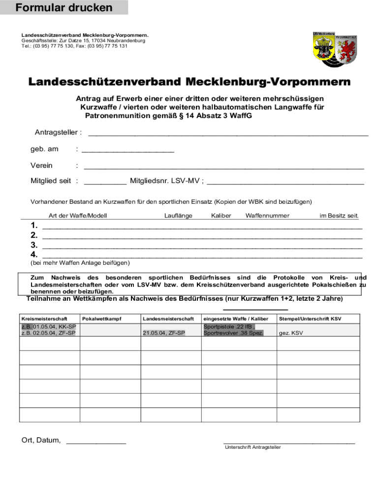 Tel.: (03 95) 77 75 130, Fax: (03 95) 77 75 131Landesschtzenverband Mecklenburg-Vorpommern