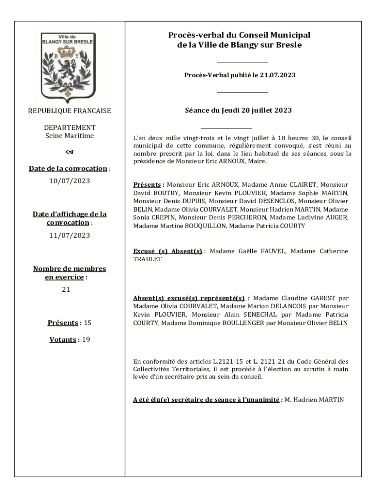 Obtenir le gratuit Procs-verbal du Conseil Municipal de la Ville de Blangy sur ...