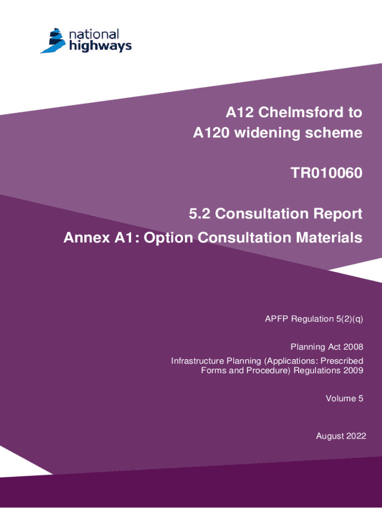 A12 Chelmsford to A120 widening scheme Stage 3 5.2 Consultation Report Annex A1 Option Consultation Materialist_Date1A12 Chelmsford to A120 widening scheme TR010060 5.2 Consultation Report Annex A1: