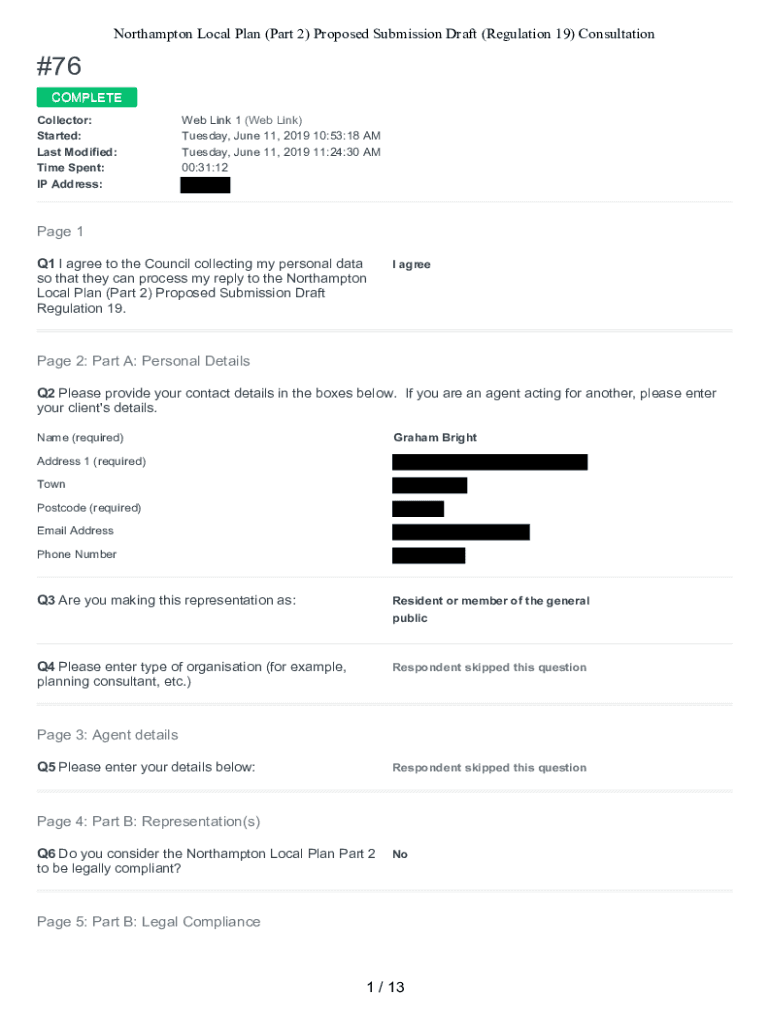 Northampton Local Plan (Part 2) Proposed Submission Draft (Regulation 19) Consultation#76 COMPLETE Collector: Started: Last Modified: Time Spent: IP Address:Web Link 1 (Web Link) Tuesday, June 11,