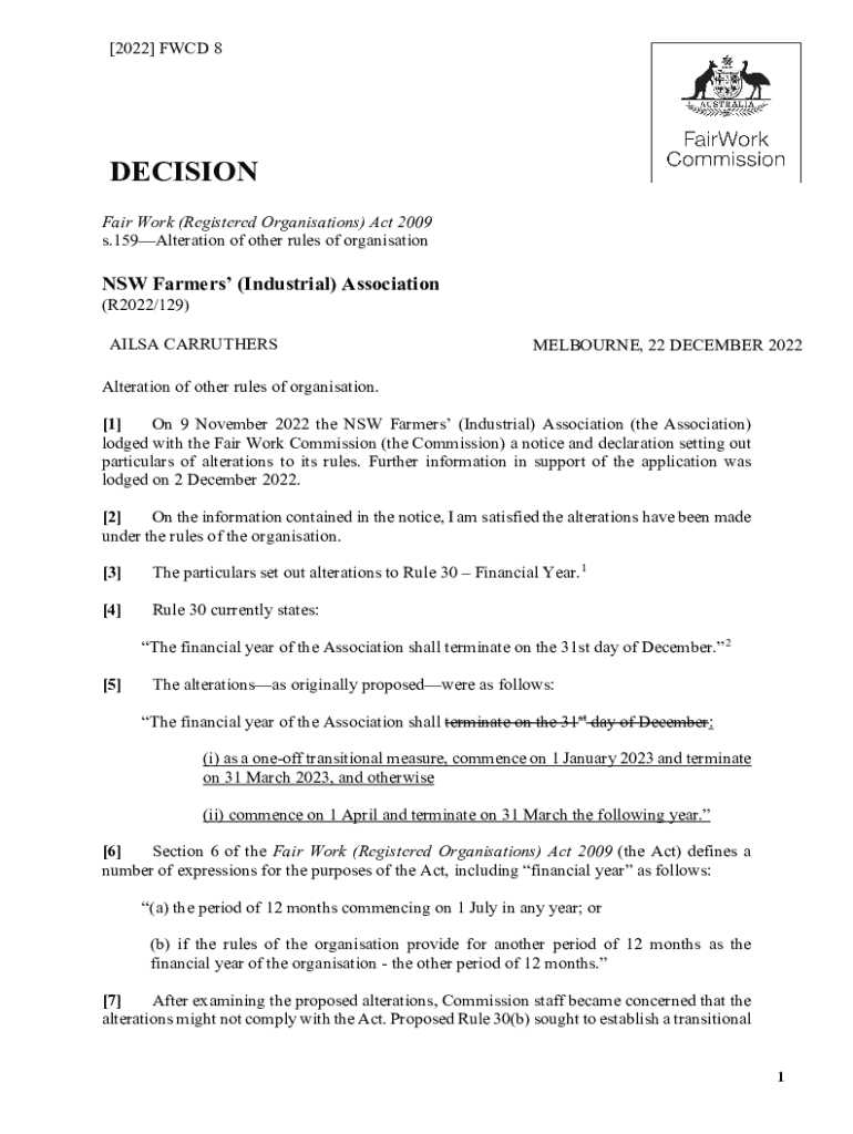 [2022] FWD 8DECISION Fair Work (Registered Organizations) Act 2009 s.159Alteration of other rules of organizations Farmers (Industrial) Association (R2022/129)AILS CARRUTHERSMELBOURNE, 22 DECEMBER