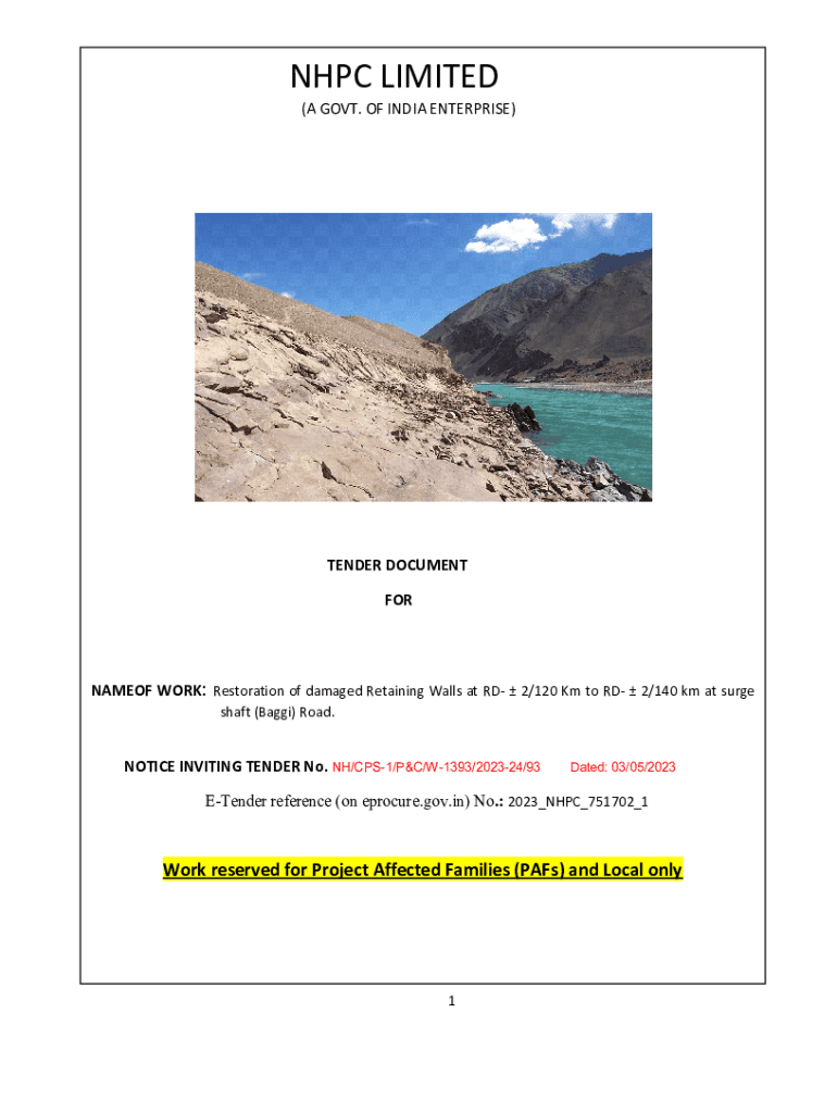 NPC LIMITED (A GOVT. OF INDIA ENTERPRISE)TENDER DOCUMENT ORNAMENT WORK: Restoration of damaged Retaining Walls at RD 2/120 Km to RD 2/140 km at surge shaft (Baggy) Road. NOTICE INVITING TENDER No.