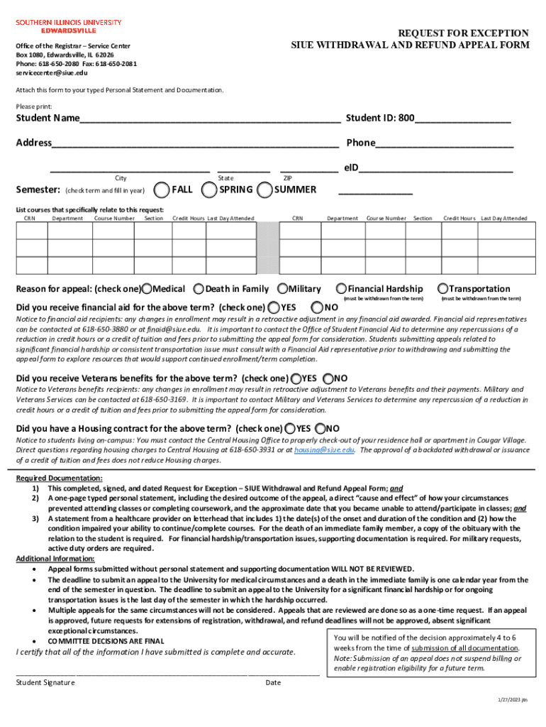 How to Apply for an Exception to the Withdrawal and/or Refund Policies: 1. Appeals due to serious injury, chronic illness, mental health condition, or a medical issue of a family member for which